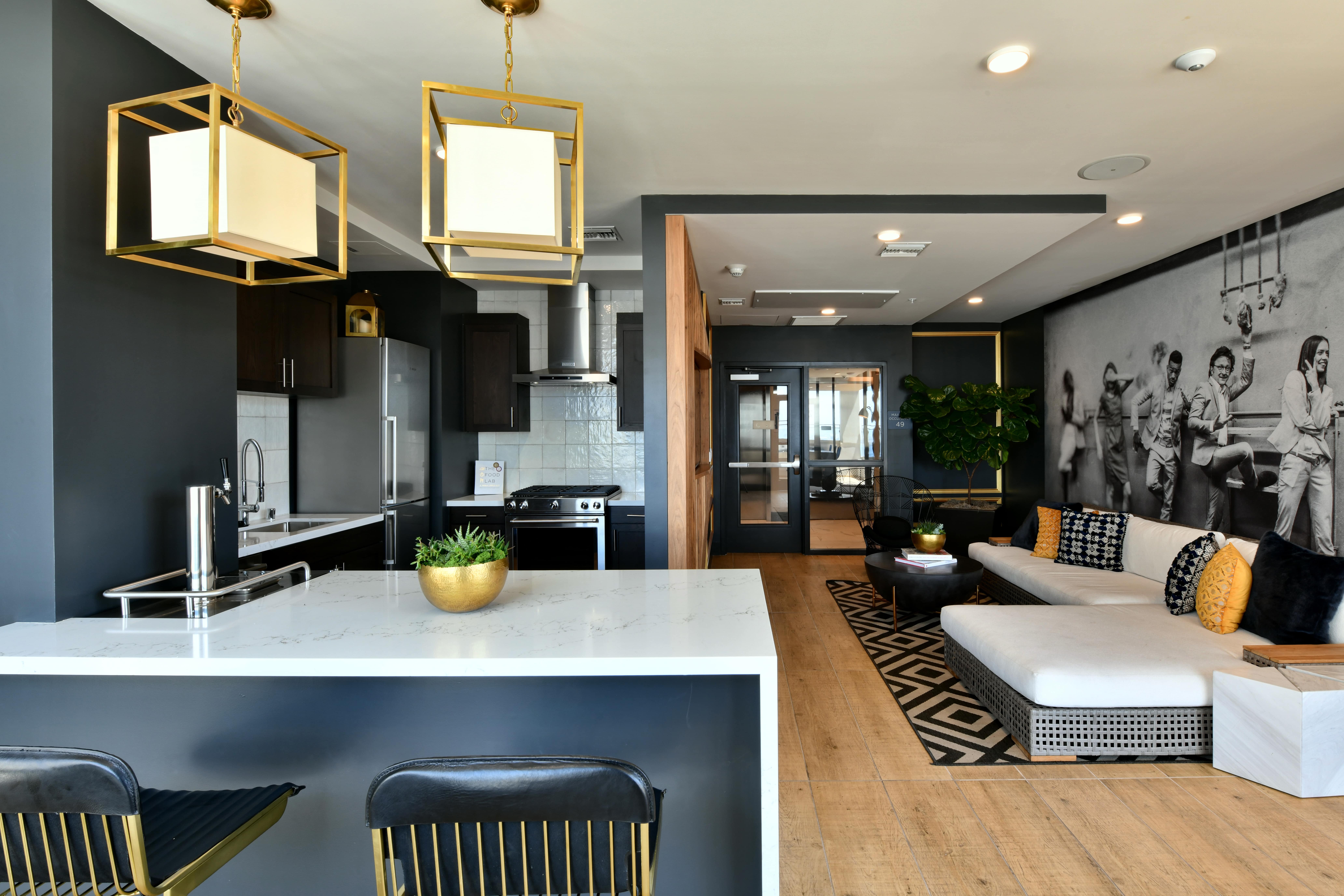 Amenities include: Village Patio - outdoor seating, loungefurniture & lush landscape; Sky Spa - a private outdoor spa retreat with city views and day beds; Horizon Lounge - A rooftop retreat featuring an indoor-outdoor entertaining space, a culinary-grade kitchen, TV, two outdoor grills, an open-air fire feature & panoramic views; Hotel-inspired Lobby - with a co-op workspace & streetscape cafe seating.