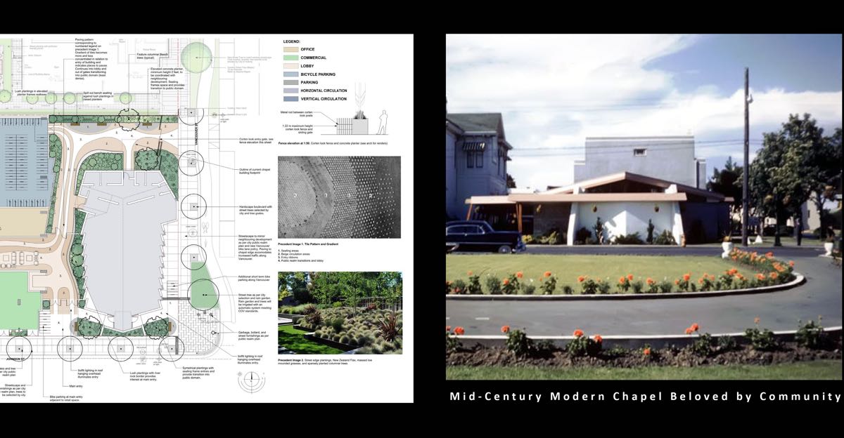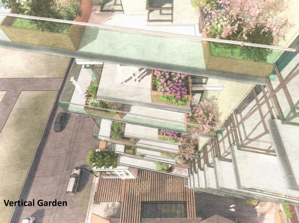 The building design stemmed from a desire to see the chapel retained and repurposed, given the role it has served in the community, and the importance of this building to Victoria's architectural heritage. The tower's shape and architectural elements are meant to reflect the design of the chapel while its massing reclaims lost density at the base through greater density on the upper floors.
