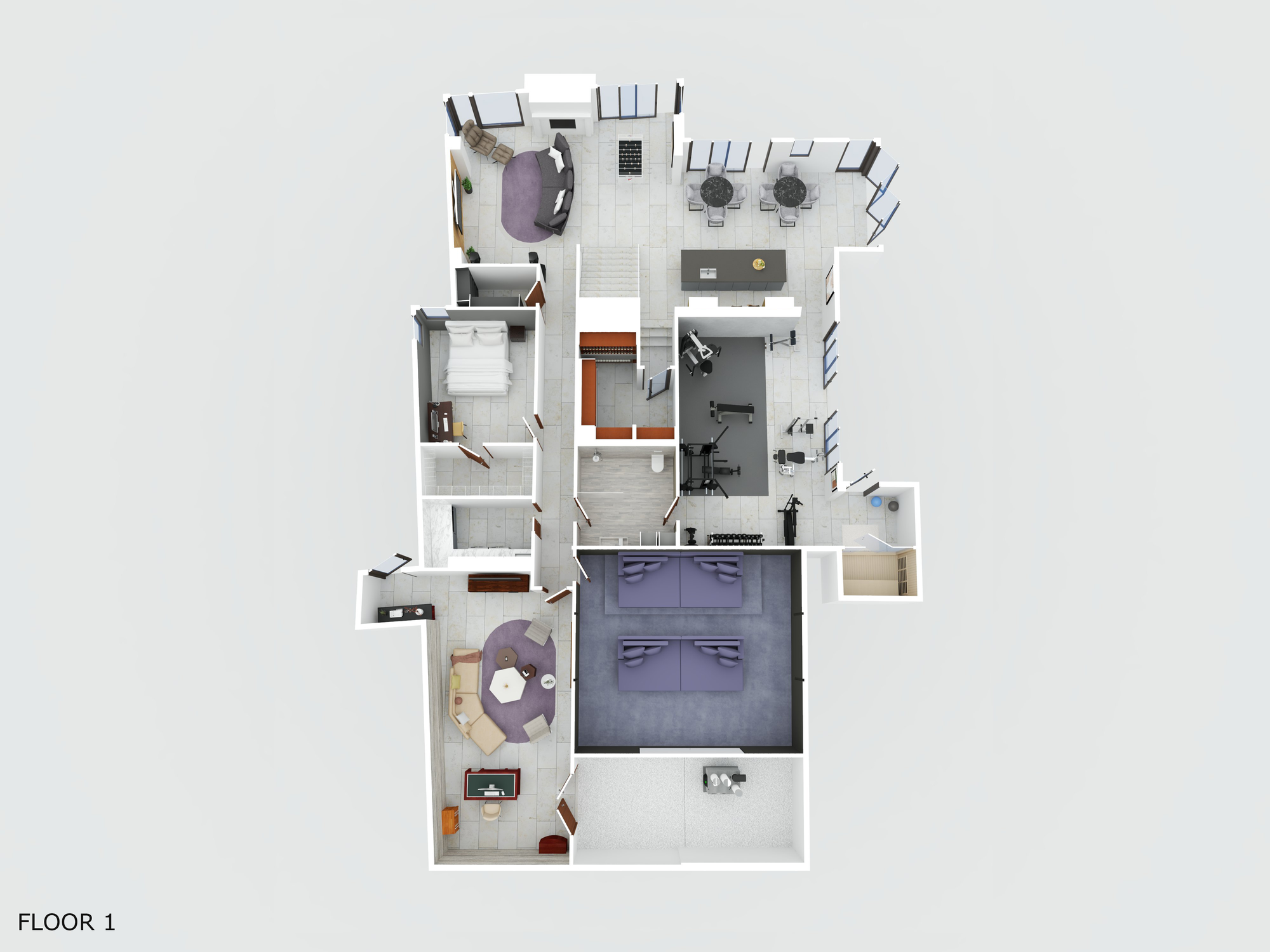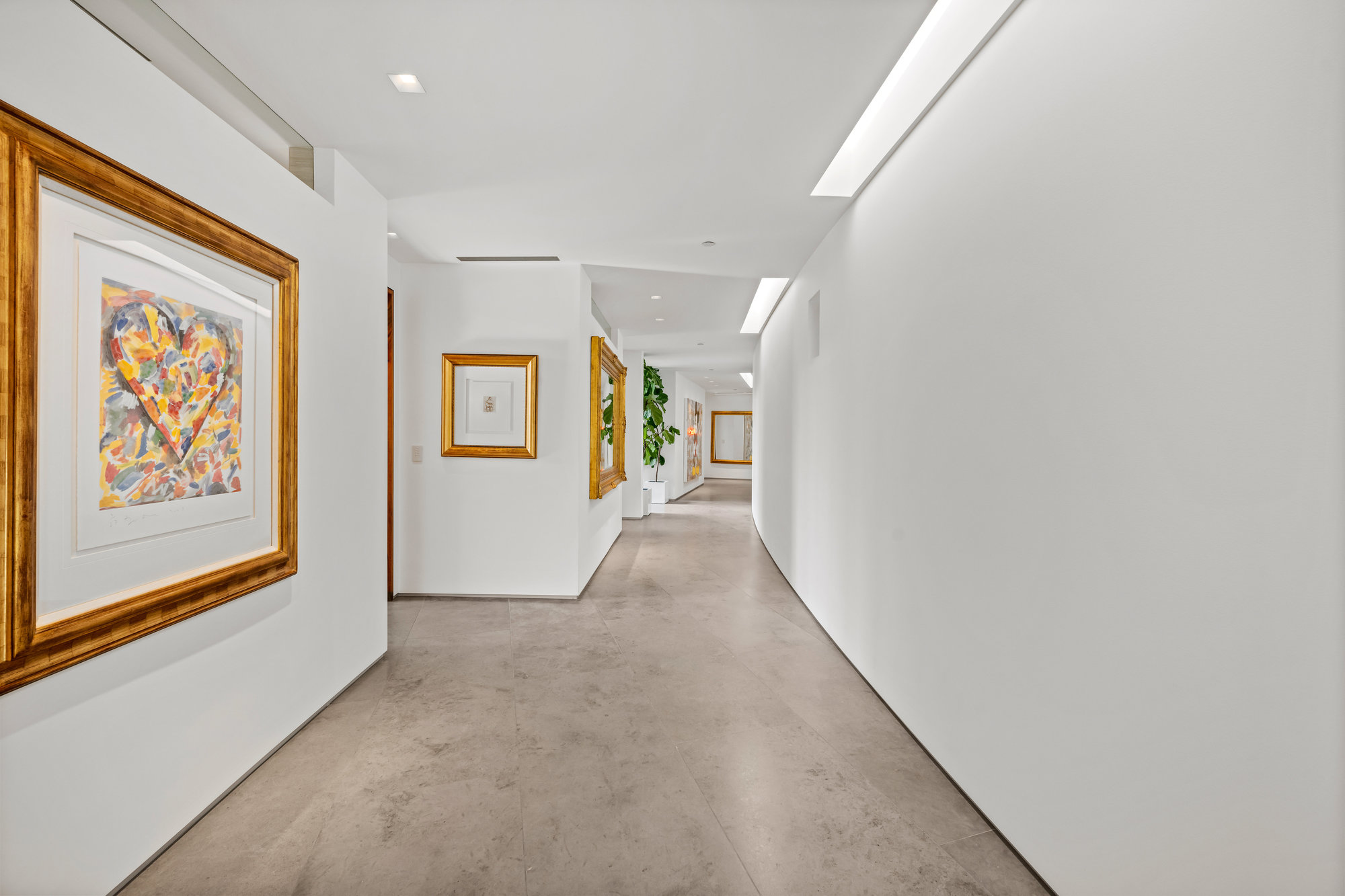 A lower story includes game room, gymnasium, his-and-her offices, home theatre, 2,000 bottle chilled wine room, guest room and bar all of which is hidden from view out front